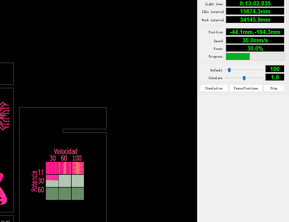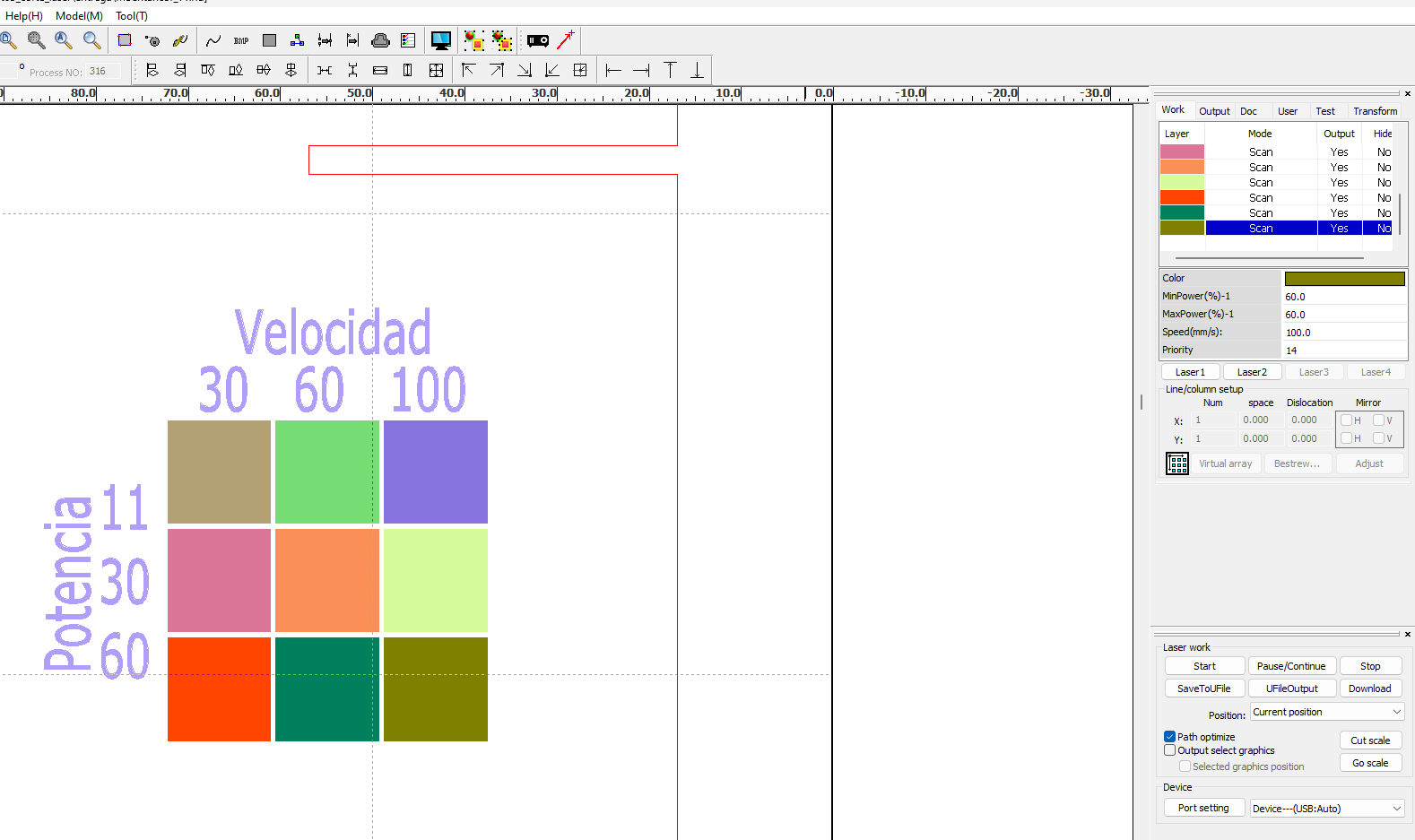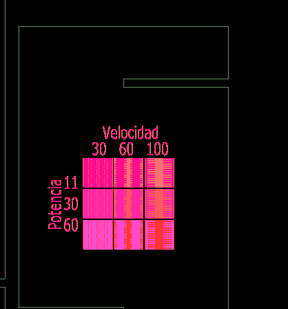 Para la grilla de referencia de rasterizado, tambien se configuraron nuevas capacas con diversos valores de velocidad y potencia del láser (Figura 8).
