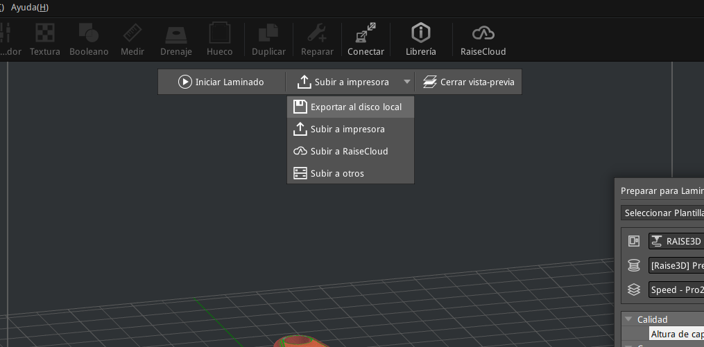 Para finalizar, exporté archivo de laminado en formato g-code al disco duro local, ver figura 10.