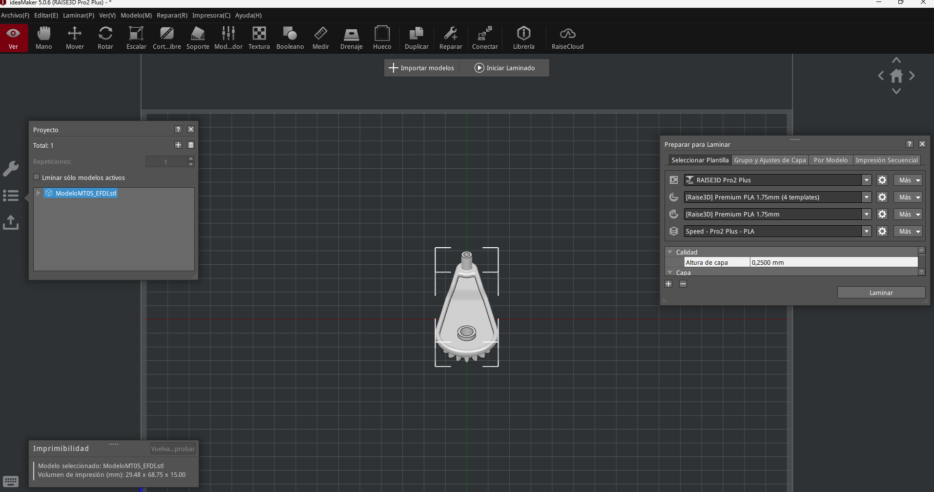 Figura 2, archivo .stl de la pieza visualizado en el programa 3D-Ideamaker.