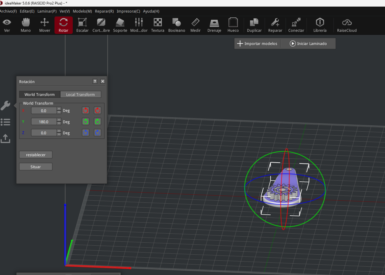 Figura 3, modelo rotado 180 grados para ubicarlo de la manera más conveniente sobre la superficie deimpresion.