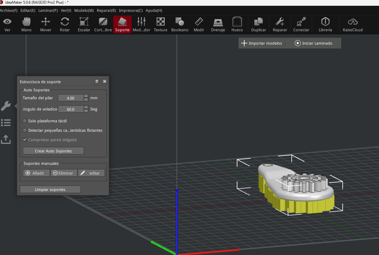 Apliqué la generación automática de soportes (figura 5).