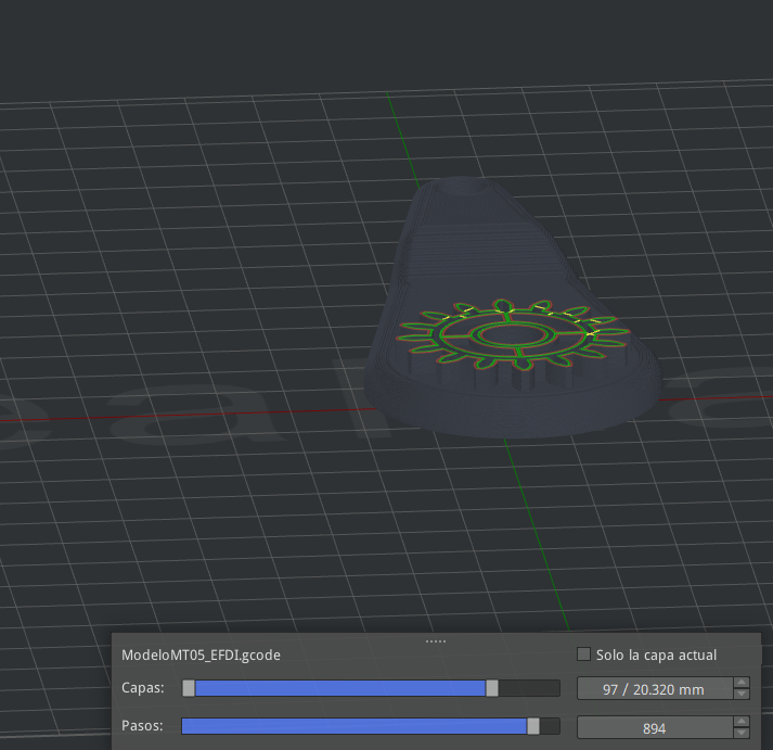 El archivo con el código G para imprimir la pieza puede descargarse desde aquí.