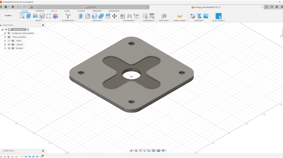 Desde el programa Fusion360 abro el archivo del modelo descargado desde el enlace proporcionado en el enlace del enunciado del ejercicio (Figura 1).