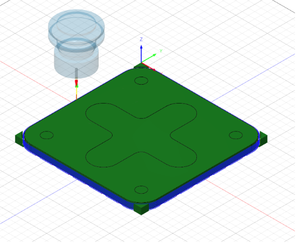 Figura 15. Simulación de la operación de recorte alrededor del perimetro externo del modelo.