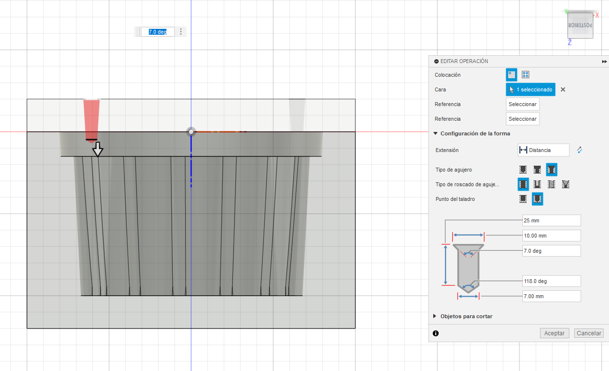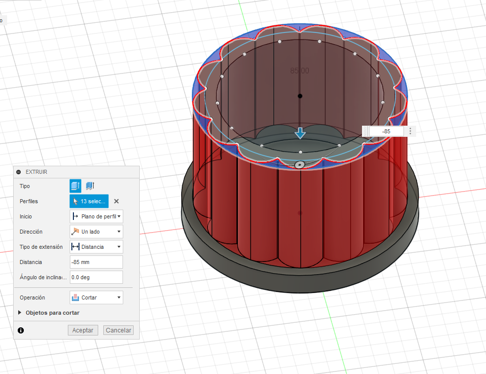 Figura 6, extrusión inicial para generar el prisma básico del molde.